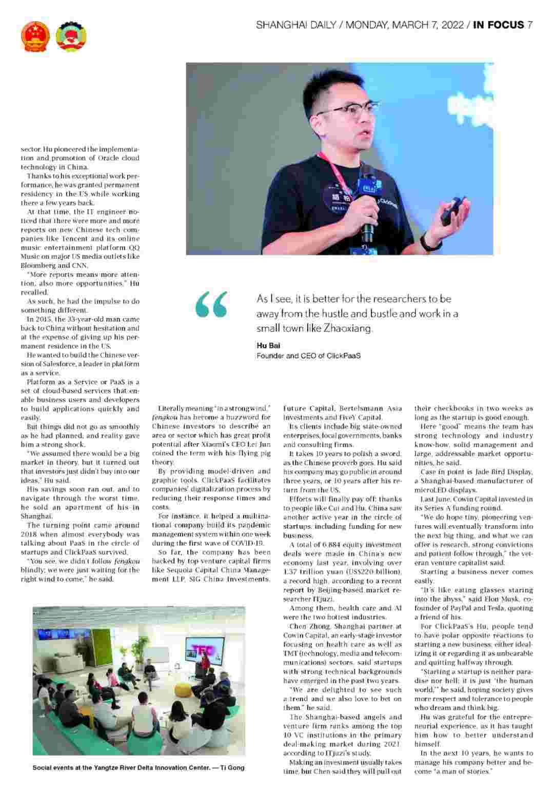 《上海日报》专访圆梦钱包创始人、、CEO胡柏,,,,探究其创业背后的故事!!!