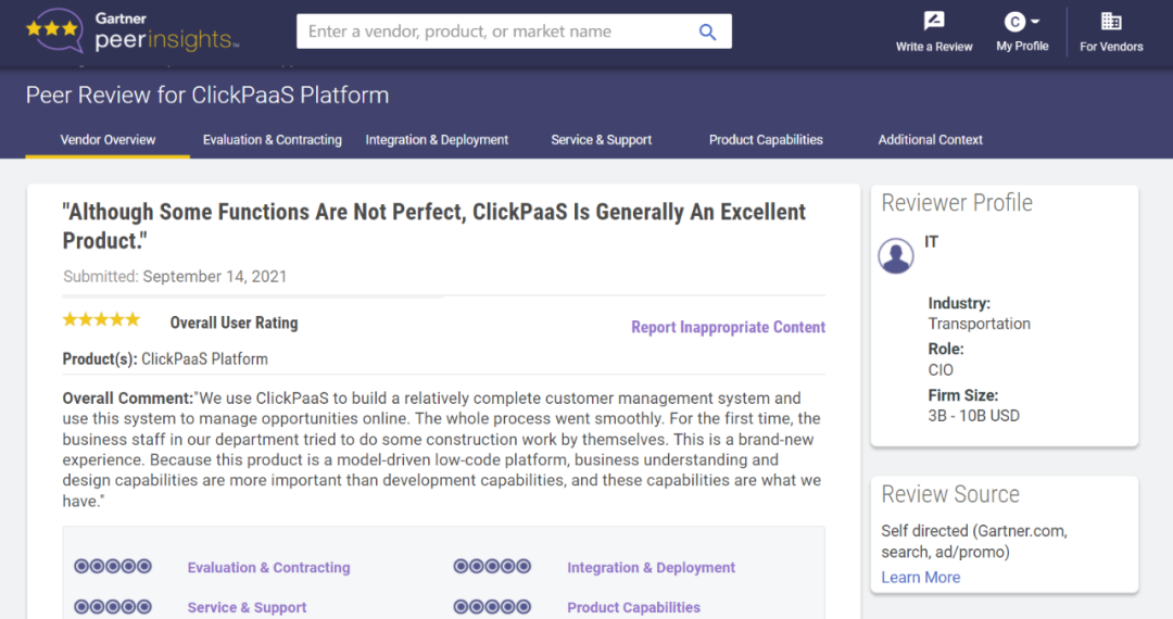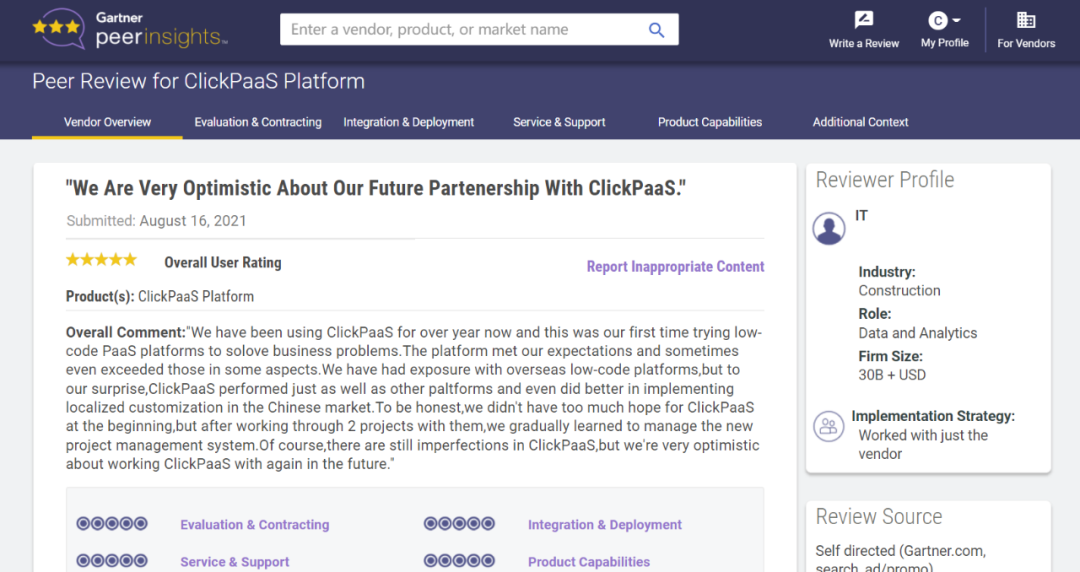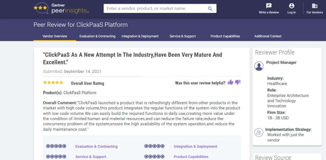 Tips::【Peer Insights】——用户对企业IT产品和服务发布真实评价的平台。。目前已有355个市场,,,255,000条经过验证的评价。。。。每一条评价Gartner会针对参评企业营收规模及参评人员信息做验证、、评价内容做多维核实。。