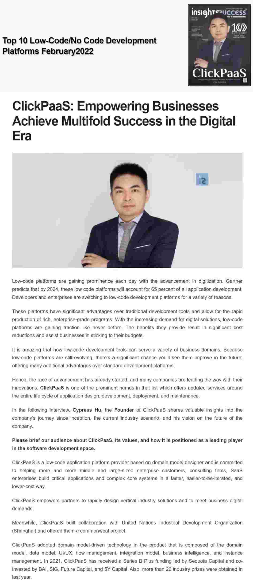 2022年年初,,,,圆梦钱包入选外媒Insights Success低代码/无代码开发平台 Top10,,,创始人、、、、CEO胡柏受邀接受专访并荣登封面人物,,,他与Insights Success的读者分享了圆梦钱包成立的初心、、发展历程、、、当前的行业发展趋势以及他对公司未来的展望。。。。